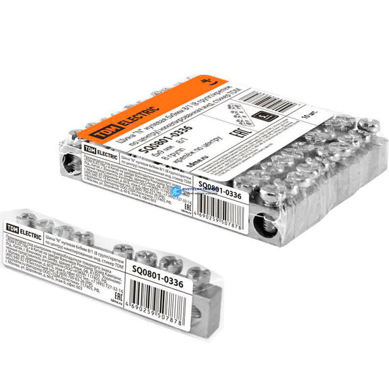 "Шина ""N"" нулевая 6х9мм 8/1 (8 групп/крепеж по центру) никелированная инд. стикер TDM" SQ0801-0336 TDM