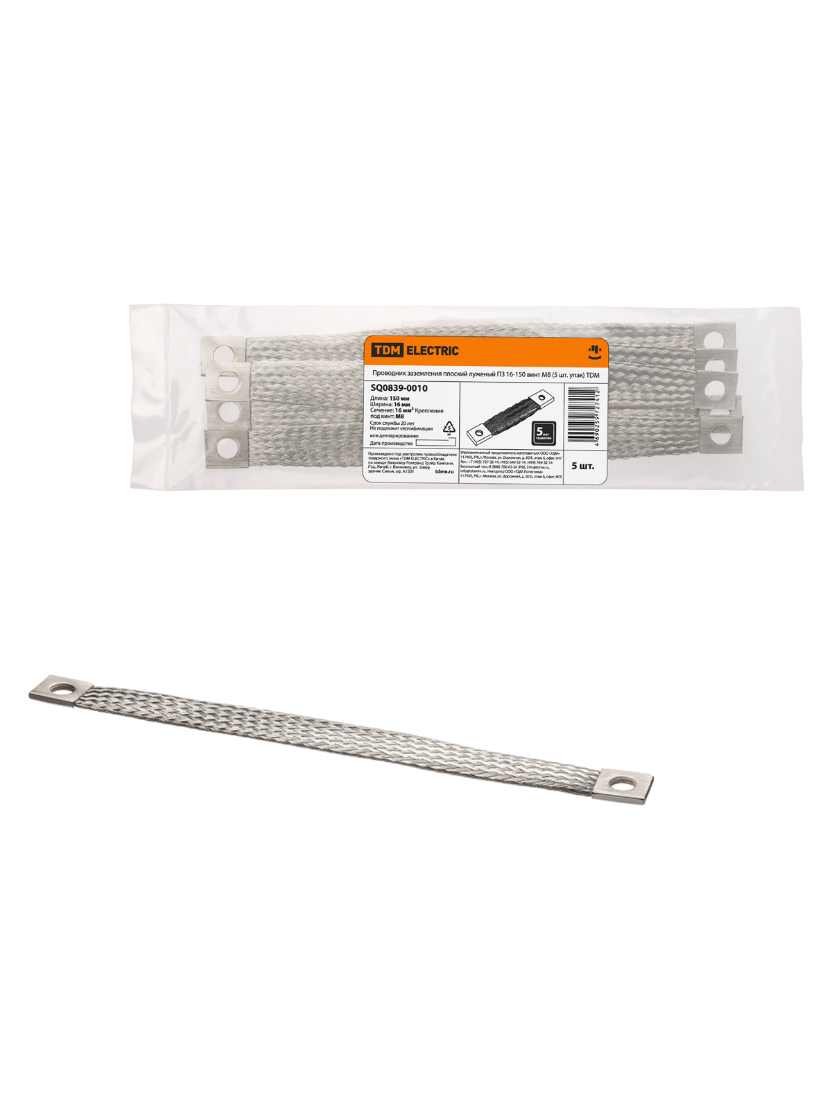 Проводник заземления плоский луженый ПЗ 16-150 (5 шт. упак) ТDM, код SQ0839-0010, производитель TDM