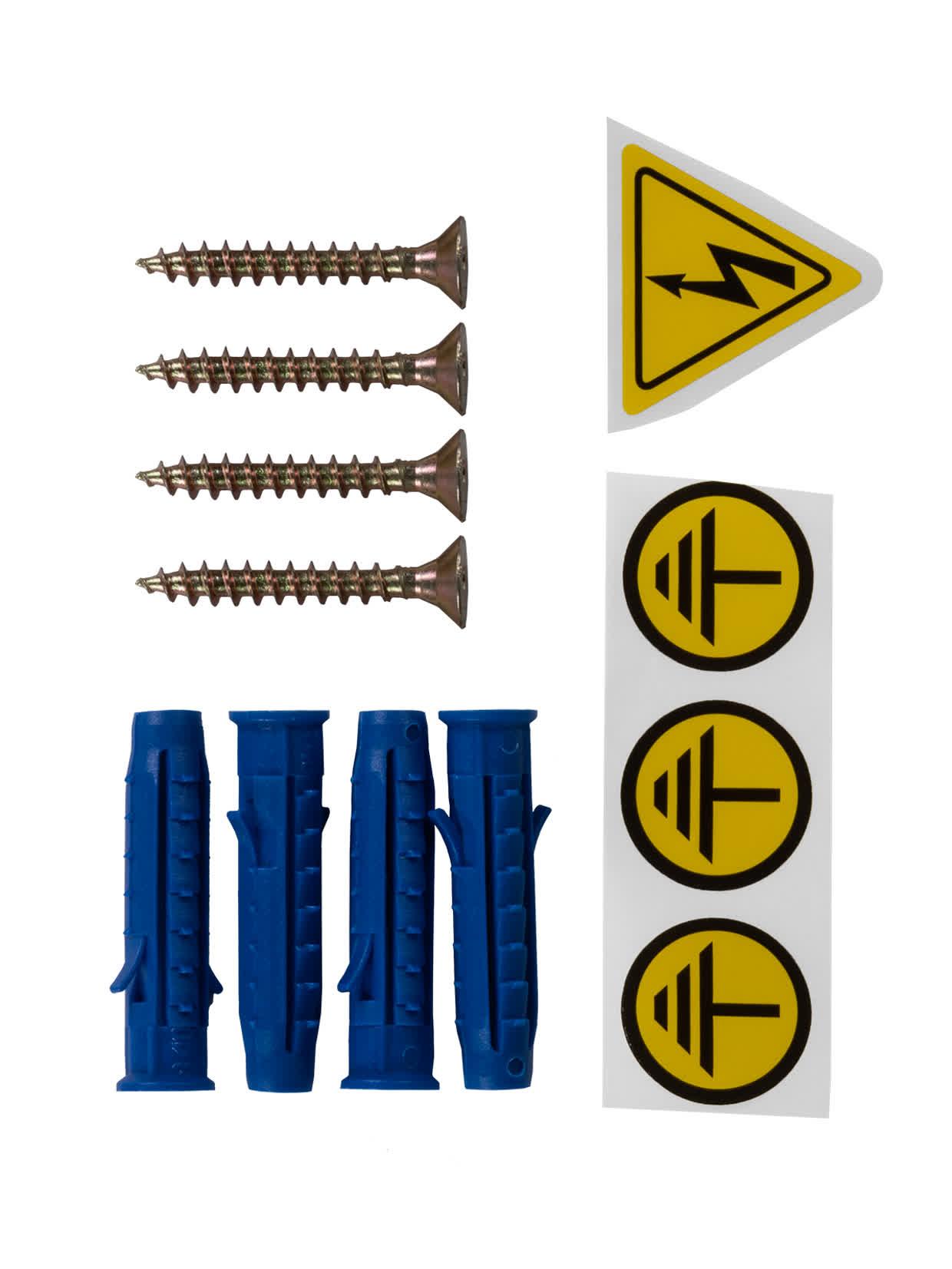| Комплектация: | корпус шкафа – 1 шт|символ ''молния'' (треугольник) 25х25х25мм – 1 шт|символ ''заземление'' d, |