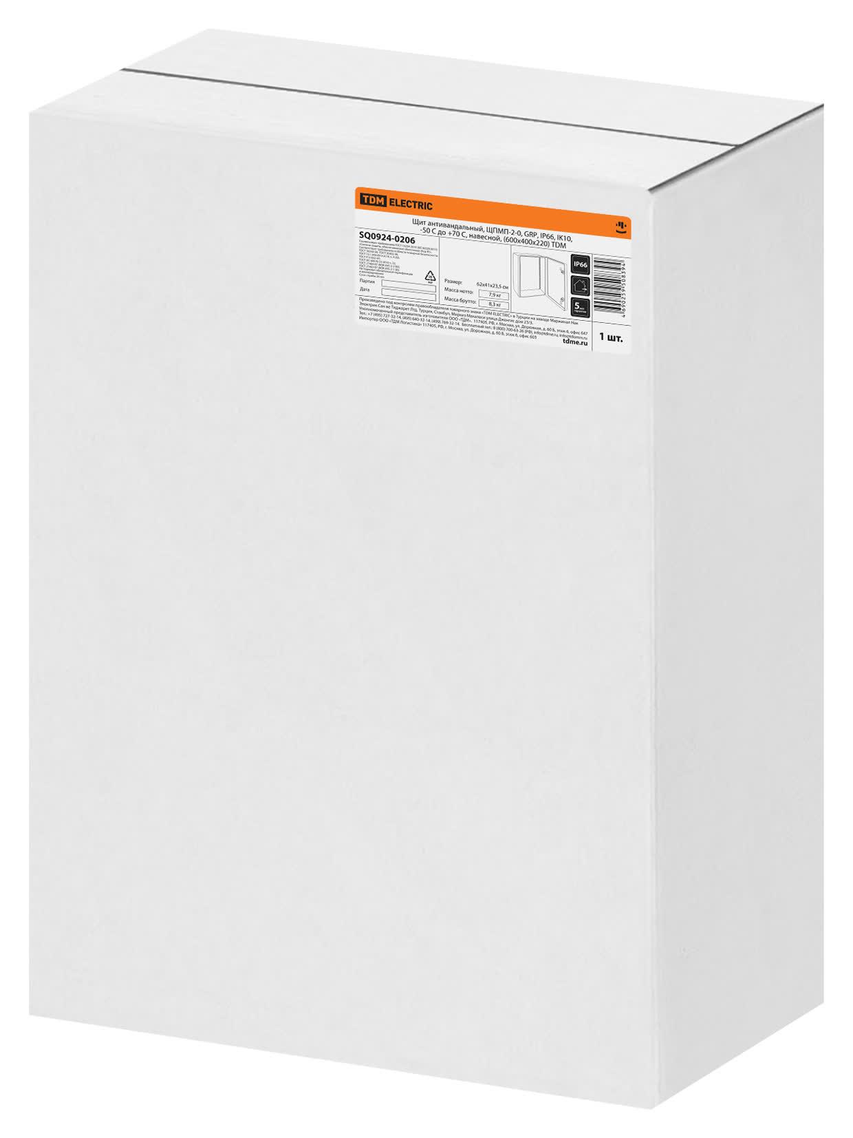 Щит антивандальный, ЩПМП-2-0, GRP, IP66, IK10, -50 С до +70 С, навесной, (600х400х220), код SQ0924-0206, производитель TDM