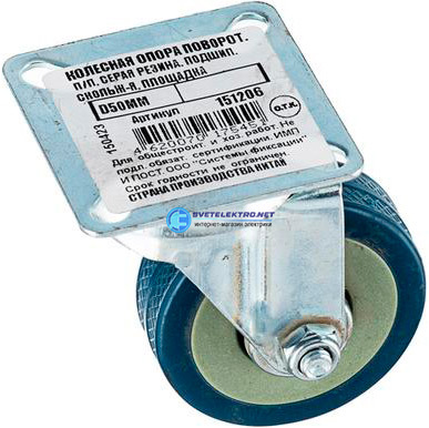 Колесо аппаратное поворотное п/п обод резина сер. подшипник скольжения площадка d50 без тормоза (уп.1шт), код 151206, производитель Tech-KREP