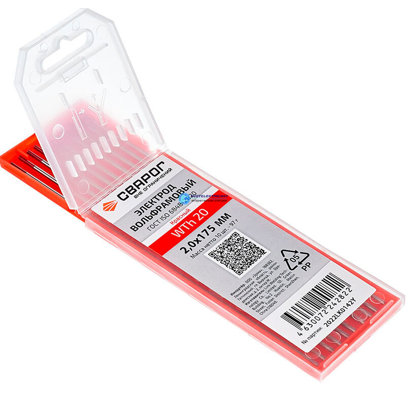 Электроды вольфрамовые WTh 20 D2,0x175, код 00000099601, производитель СВАРОГ