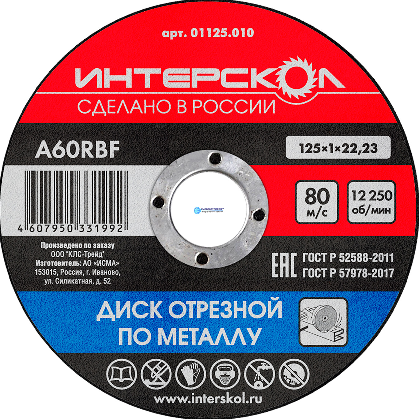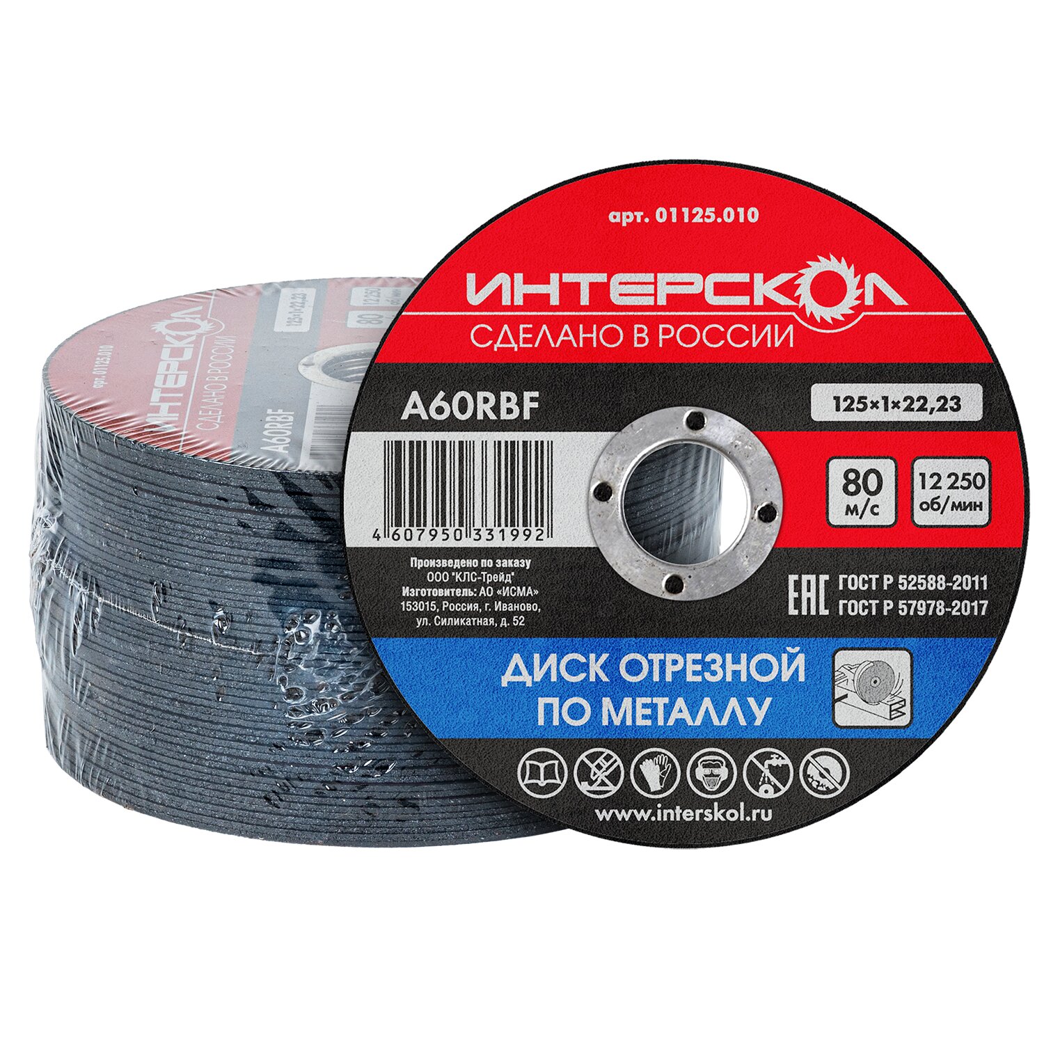 Диск отрезной по металлу 125х22,2х1, код 01125.010, производитель ИНТЕРСКОЛ