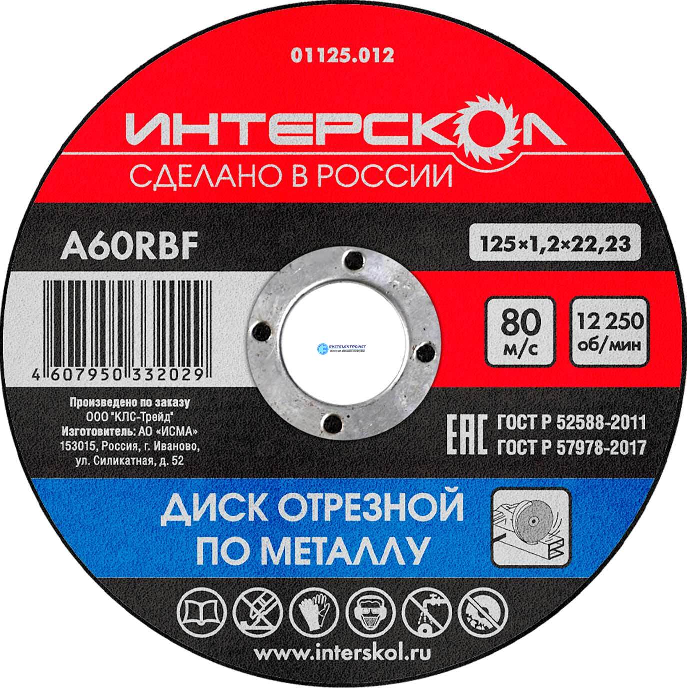 Диск отрезной по металлу 125х22,2х1,2, код 01125.012, производитель ИНТЕРСКОЛ