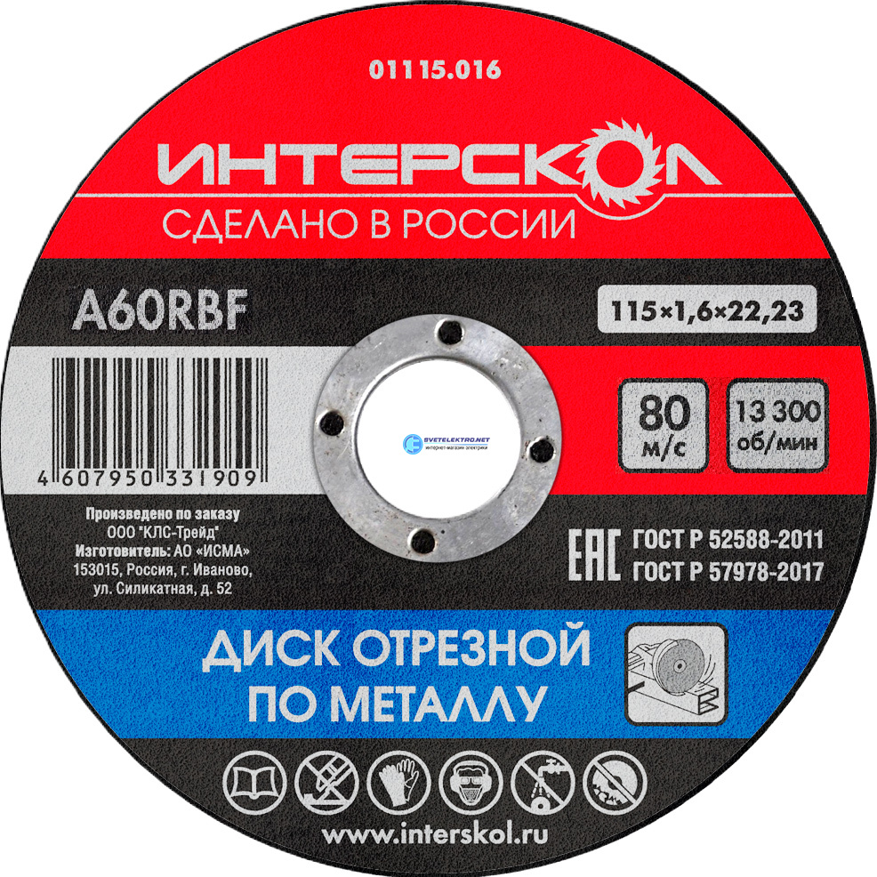 Диск отрезной по металлу 125х22,2х1,6, код 01125.016, производитель ИНТЕРСКОЛ