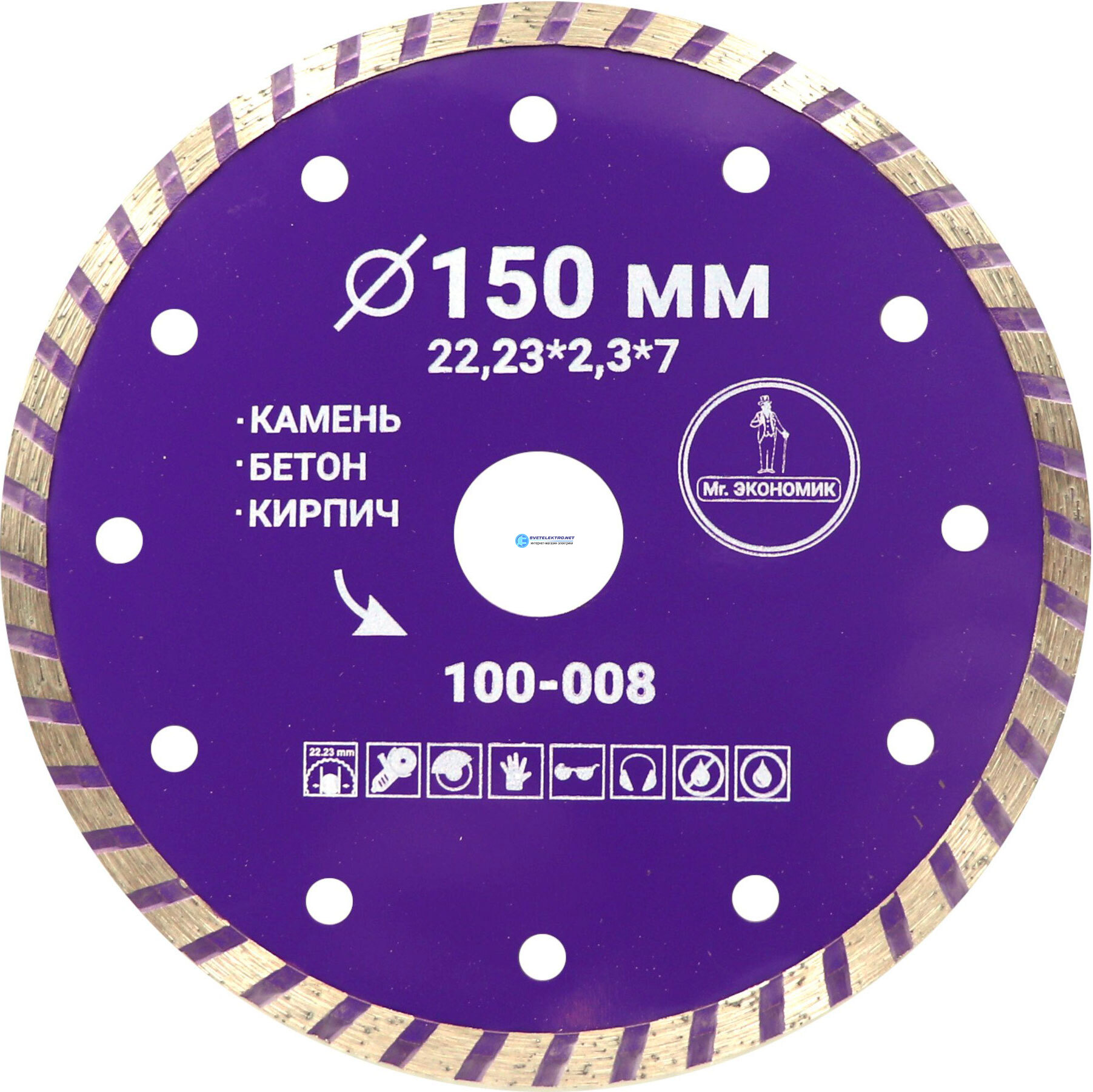 Диск алмазный 150 мм, 22.23 мм, Турбо, сухой, мокрый рез., код 100-008, производитель Mr. ЭКОНОМИК