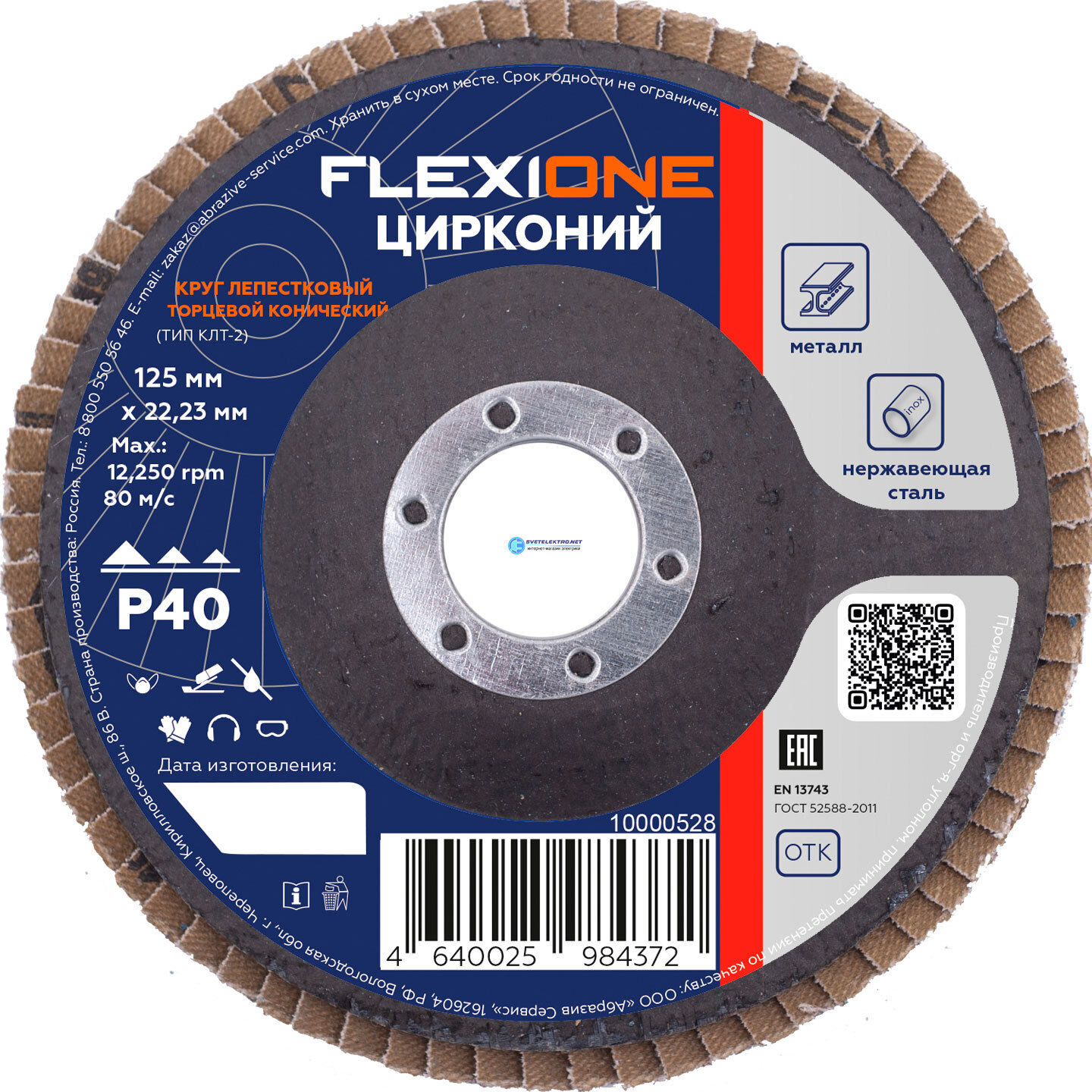 Круг лепестковый конический Цирконий 125х22мм Р40, код 10000528, производитель FLEXIONE