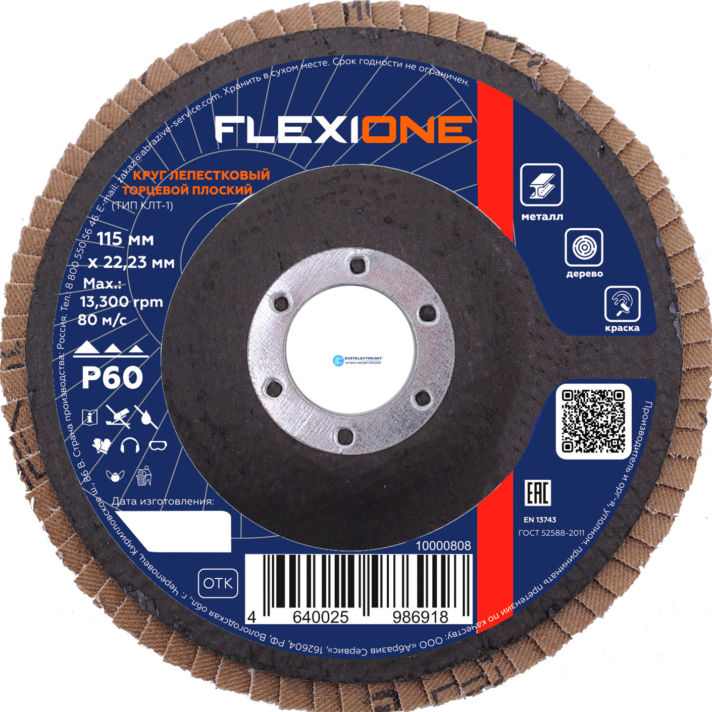 Круг лепестковый плоский 115х22мм Р60, код 10000808, производитель FLEXIONE