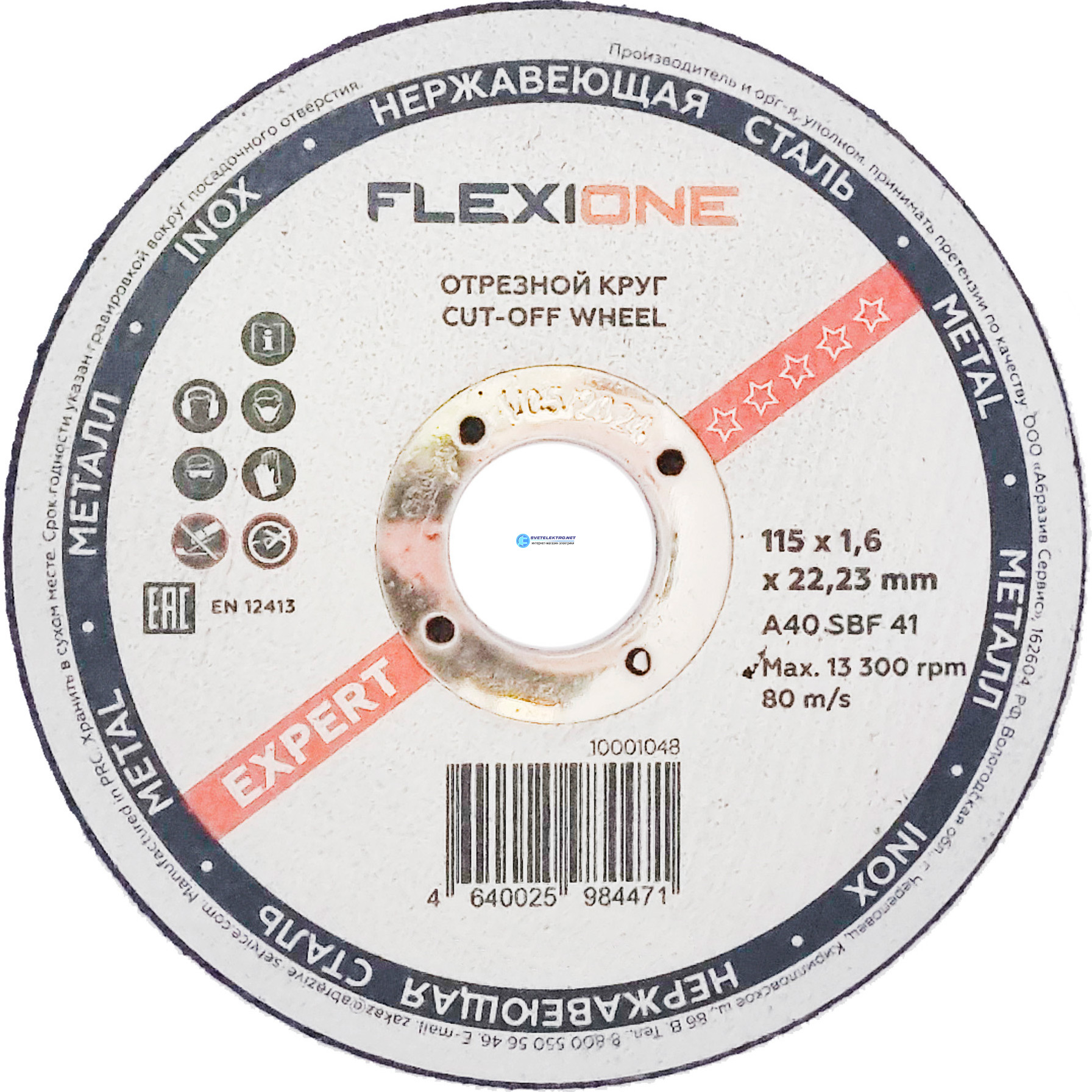 Круг отрезной металл-нержавейка 115х1.6х22,23 тип41 Expert, код 10001048, производитель FLEXIONE