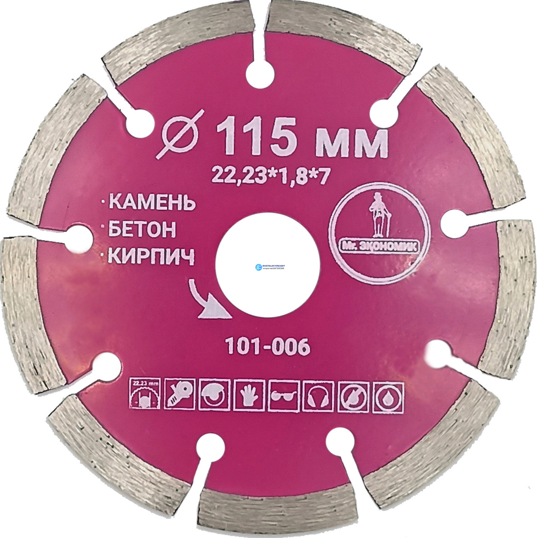 Диск алмазный сегментный 115 мм, 22.23 мм Сегментный, сухой, мокрый рез., код 101-006, производитель Mr. ЭКОНОМИК