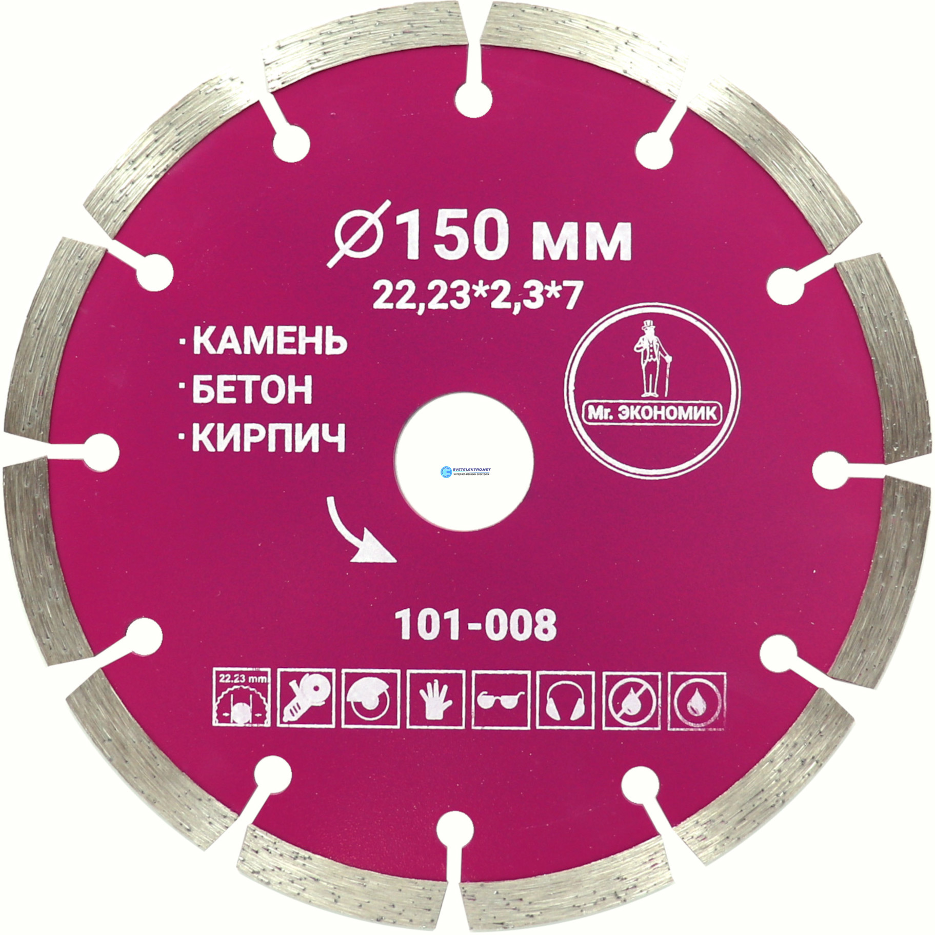 Диск алмазный сегментный 150 мм, 22.23 мм Сегментный, сухой, мокрый рез., код 101-008, производитель Mr. ЭКОНОМИК