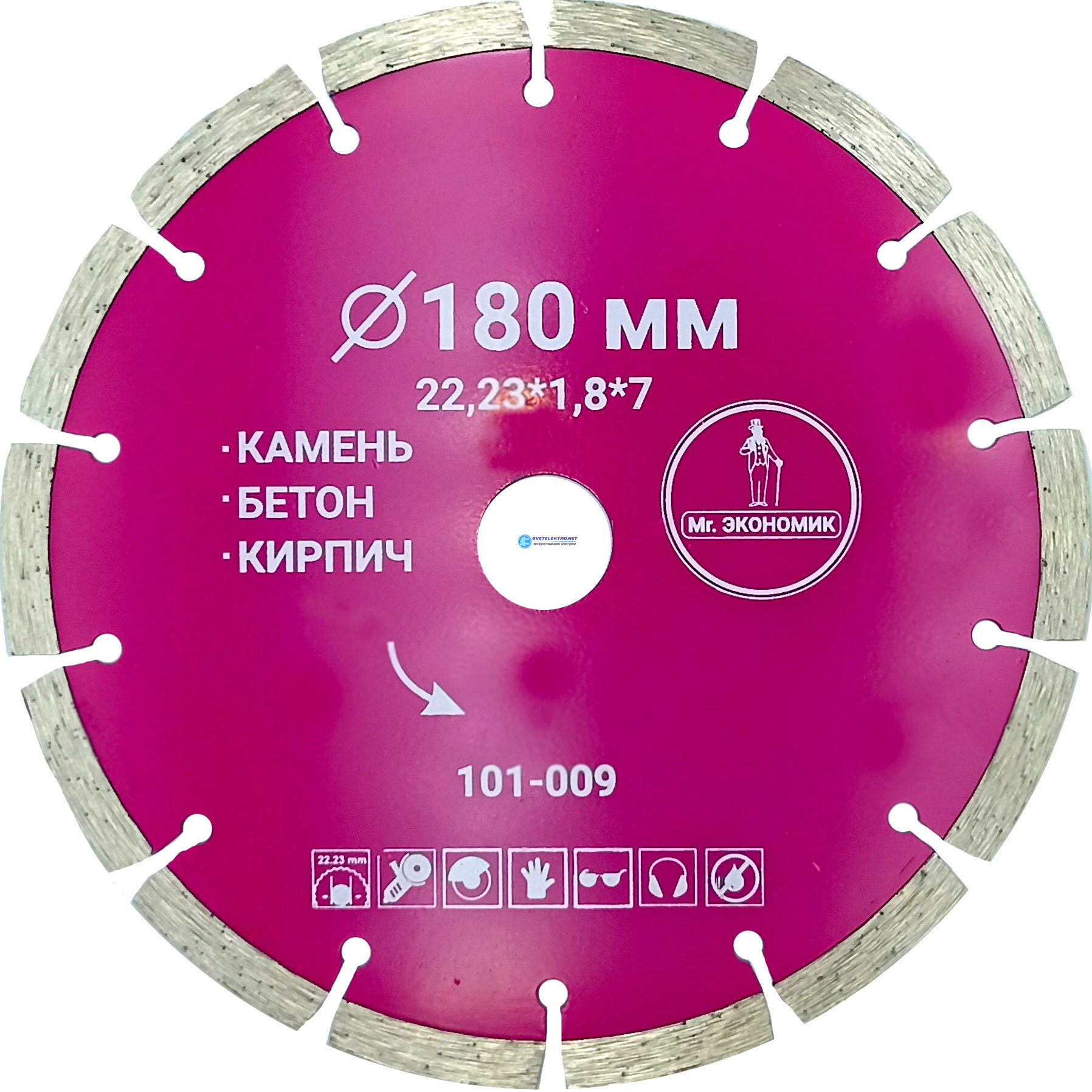 Диск алмазный сегментный 180 мм, 22.23 мм Сегментный, сухой, мокрый рез., код 101-009, производитель Mr. ЭКОНОМИК