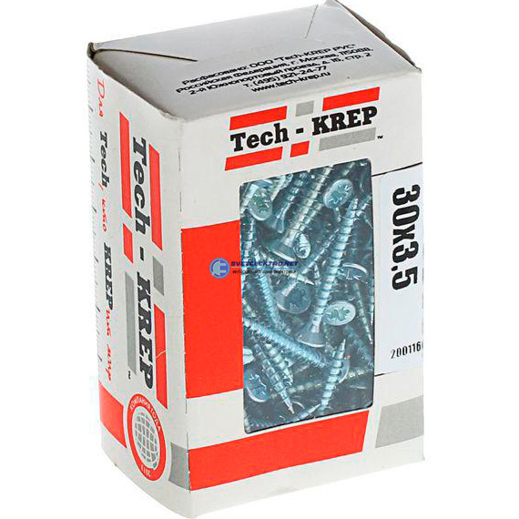 Шуруп универсальный 3,5х30 потайная головка, остроконечный, оцинкованный (200шт) коробка, код 102171, производитель Tech-KREP