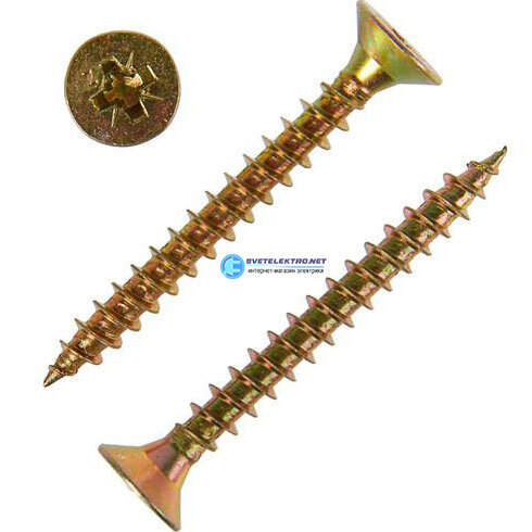 Шуруп универсальный 6х50 потайная головка, остроконечный, желтопассивированный (6шт) пакет, код 102518, производитель Tech-KREP