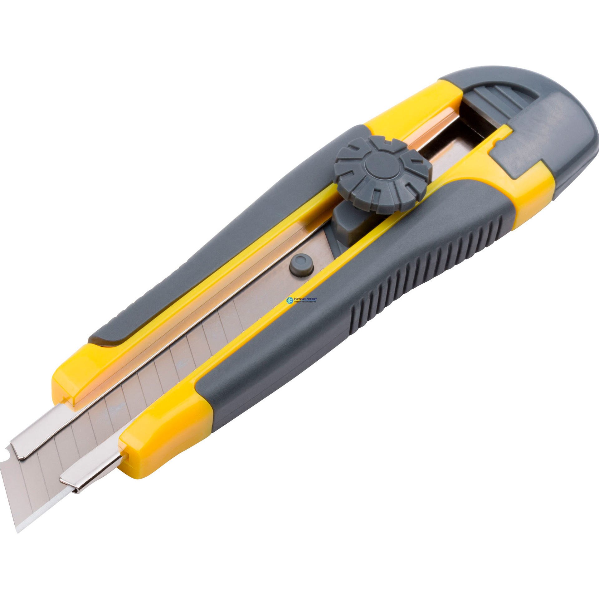 | Преимущества: | лезвие из высокоуглеродистой инструментальной стали позволяет резать широкий спектр материалов|15 сегментов лезвия способствуют сохранению остроты долгое время|вращающийся пластиковый прижим прочно фиксирует лезвие в необходимом положении|металлическая направляющая усиливает конструкцию ножа|резиновая накладка на корпусе предотвращает проскальзывание во время работы: |