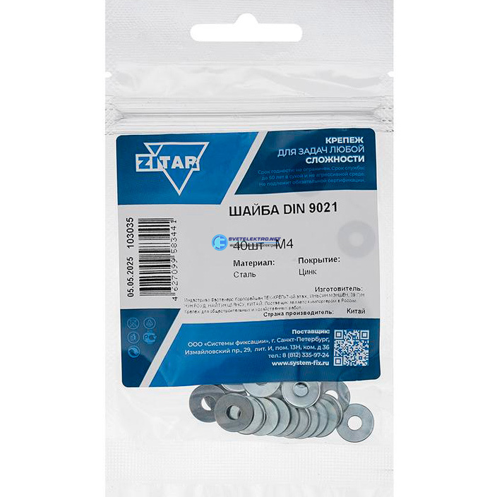 Шайба DIN9021 М4 увеличенная кузовная оцинкованная (40 шт), код 103035, производитель Tech-KREP
