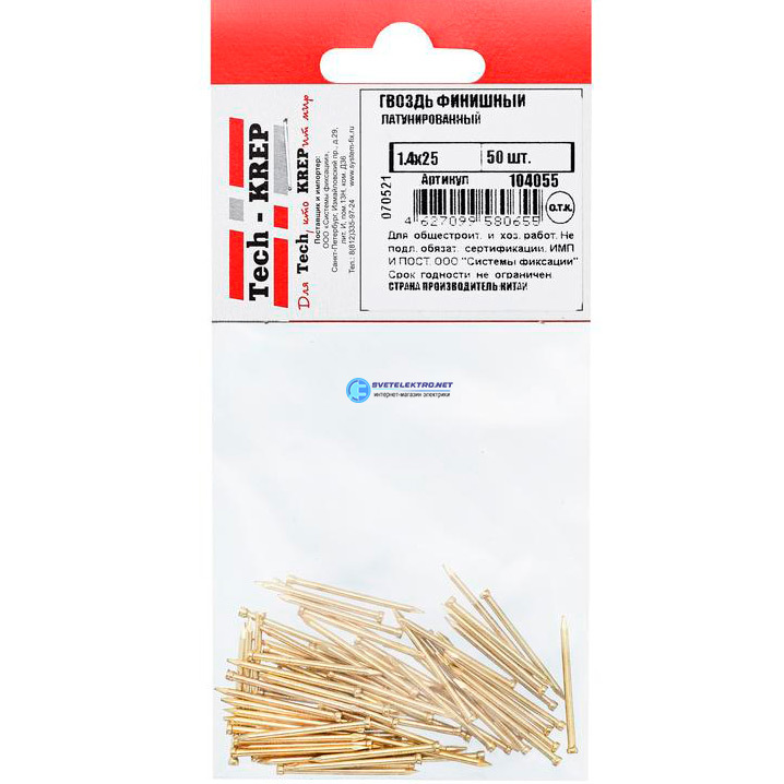 Гвоздь финишный 1.4х25 латунированный (уп.50шт), код 104055, производитель Tech-KREP