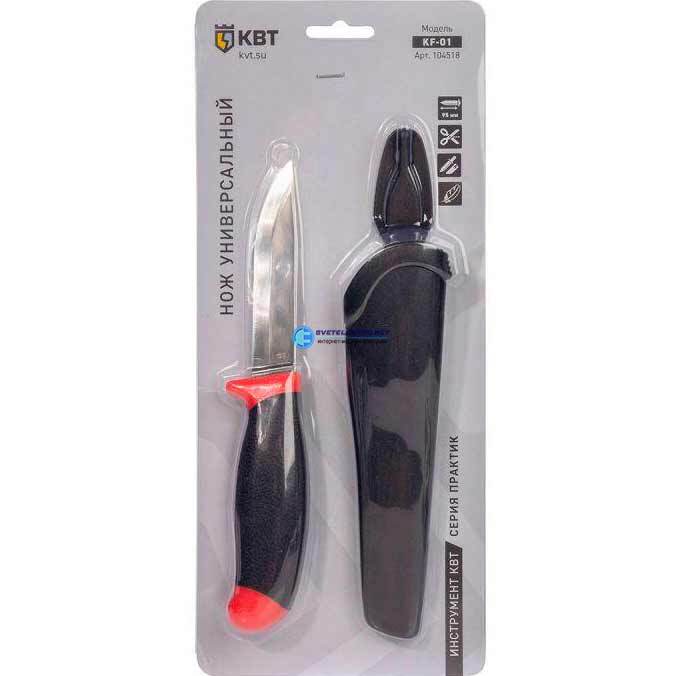 Нож универсальный KF-01 серия ПРАКТИК с фиксированным лезвием из нержавеющей стали, код 104518, производитель КВТ