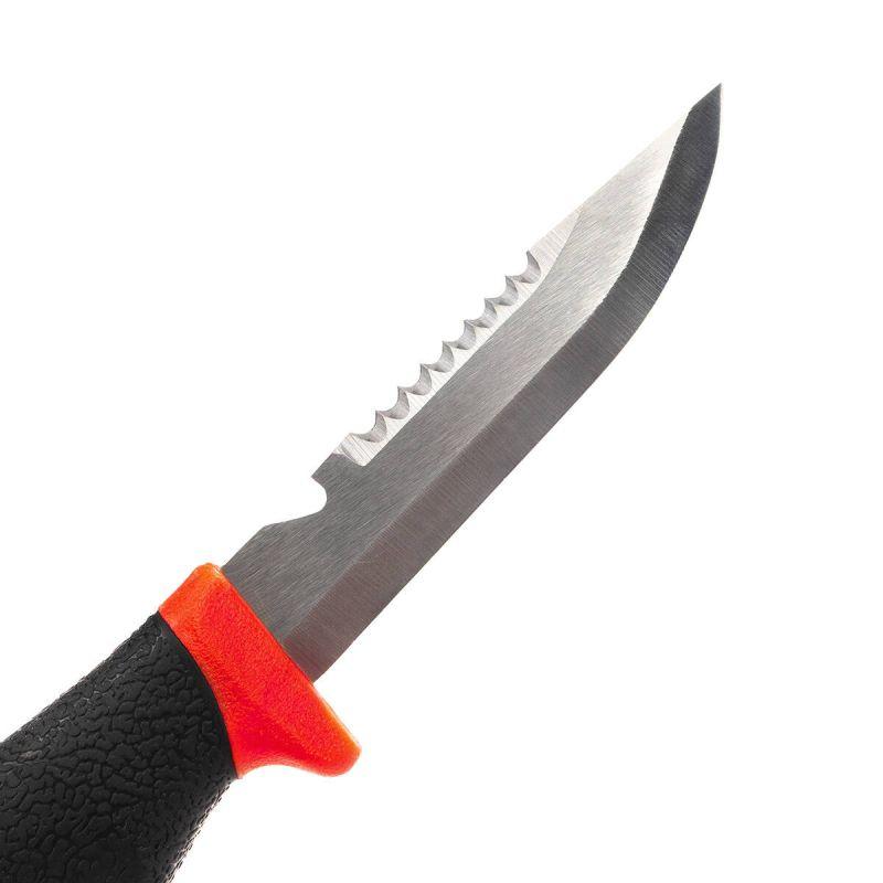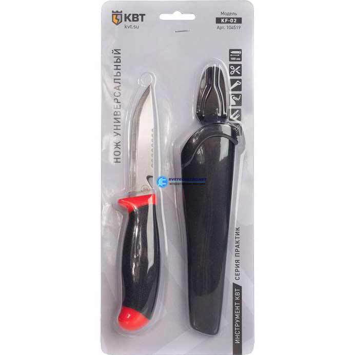 Нож универсальный KF-02 серия ПРАКТИК с фиксированным лезвием из нержавеющей стали, серейторной заточкой и стропорезом на обухе, код 104519, производитель КВТ