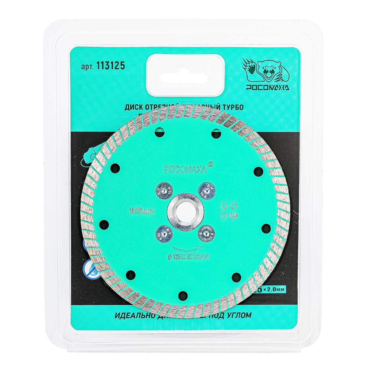 Дик отрезной алмазный ТУРБО по натуральному камню фланцем М14 125х2,2 мм, код 113125, производитель Росомаха