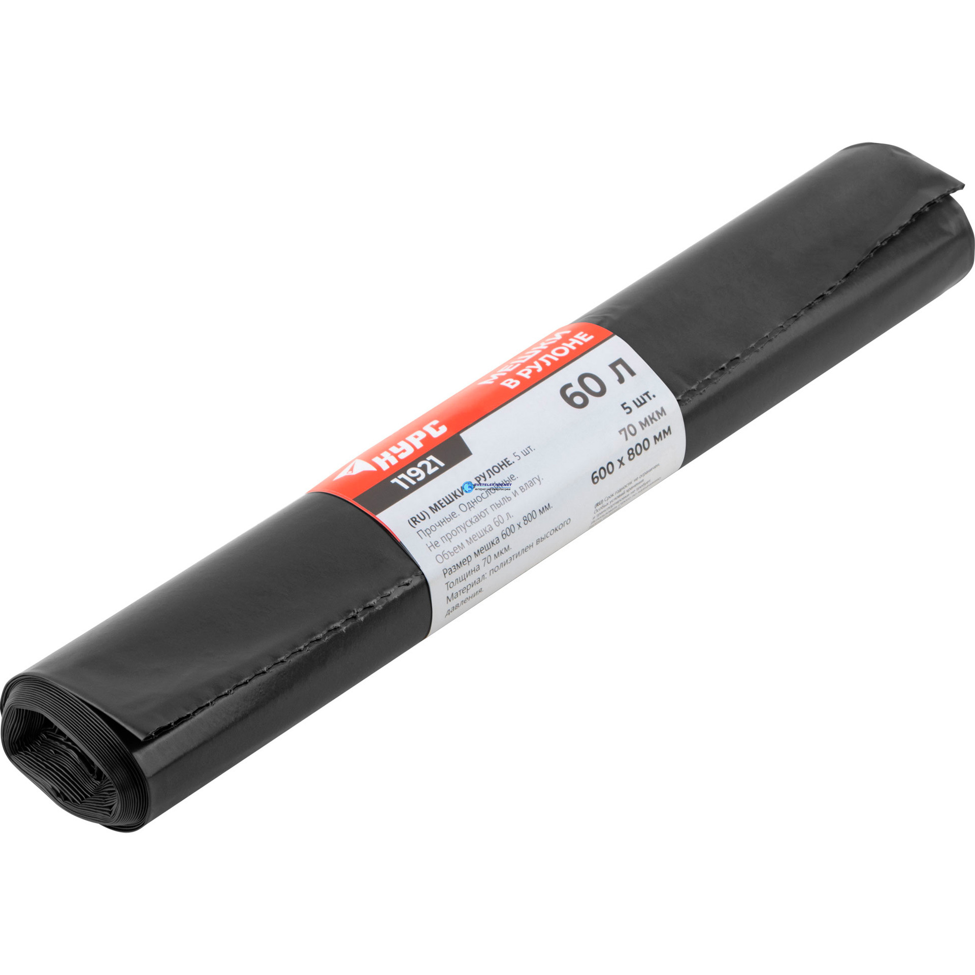 Мешки для строительного мусора, ПВД прочные, 60 л, 600х800 мм, толщина 70 мкм, 5 шт., код 11921, производитель КУРС РОС