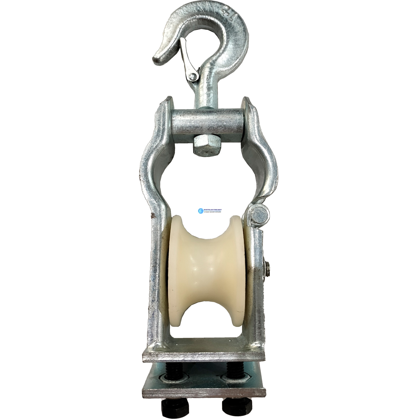| Преимущества: | Остов ролика выполнен из стали с защитным покрытием, ролик выполнен из нейлона. | В верхней части ролика установлен крюк с подпружиненным зевом, исключающим падение изделия с высоты и обеспечивающим установку подвесного типа. | В нижней части остова расположена скоба с двумя болтами, скоба позволяет установить ролик на профиле металлоконструкций — обеспечивает установку опорного типа. | Наличие откидной щеки позволяет без особых усилий производить выемку провода после его раскатки. | Ролик выполнен из диэлектрического материала, устойчив к УФ-излучению, перепадам температуры, выполнение работ до -20 градусов.: |