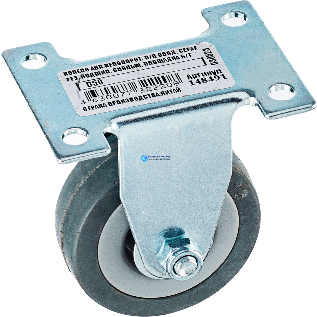 Колесо аппаратное неповоротное п/п обод резина сер. подшипник скольжения площадка d50 без тормоза, код 148491, производитель Tech-KREP