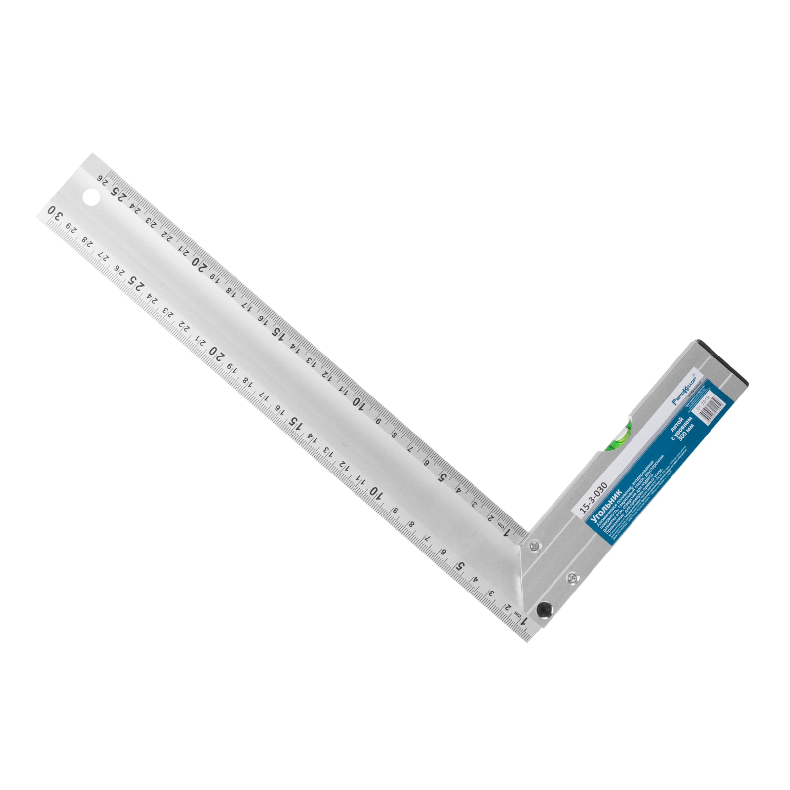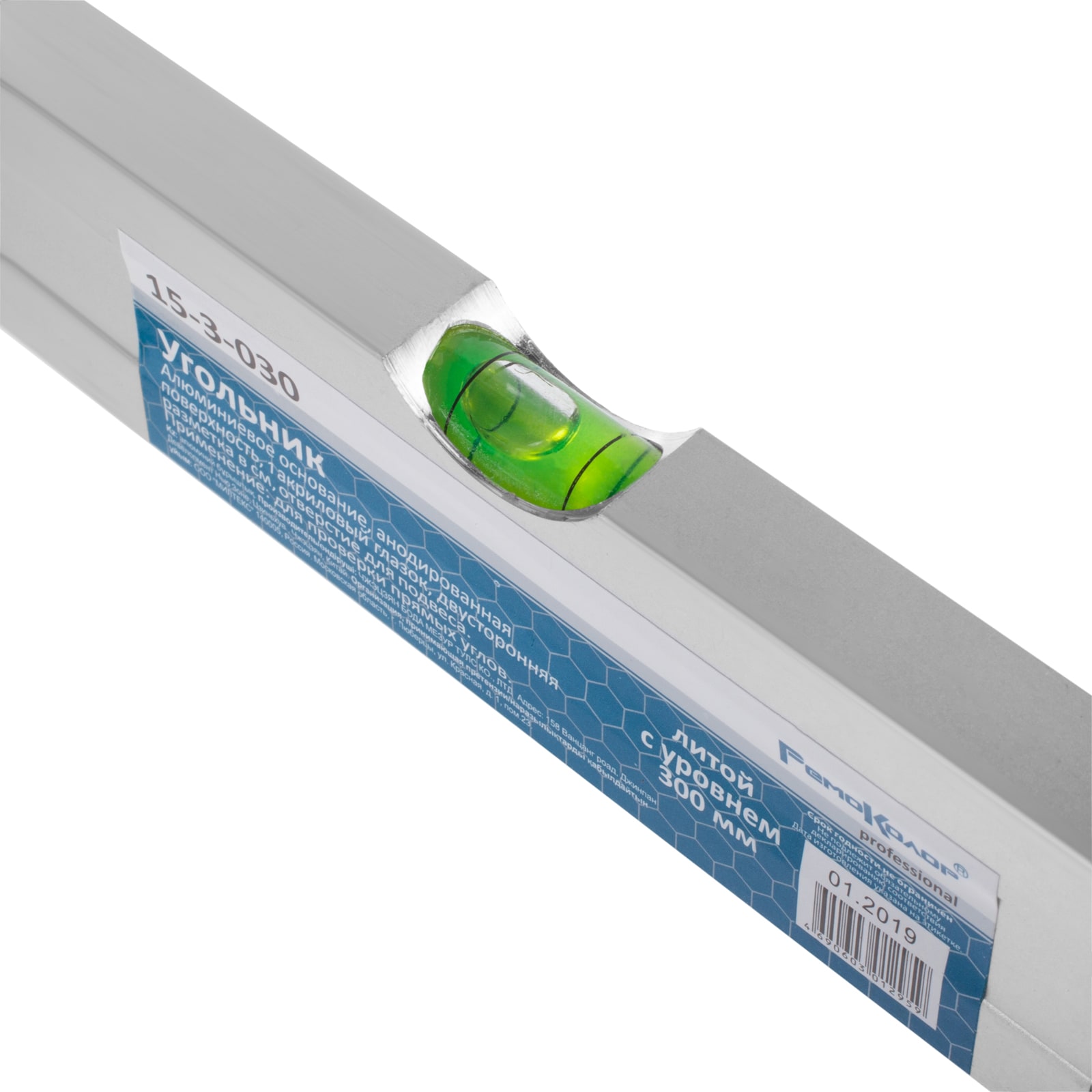 Угольник алюминиевый литой с уровнем, акриловый глазок, двусторонняя разметка в см, 300мм, код 15-3-030, производитель Ремоколор