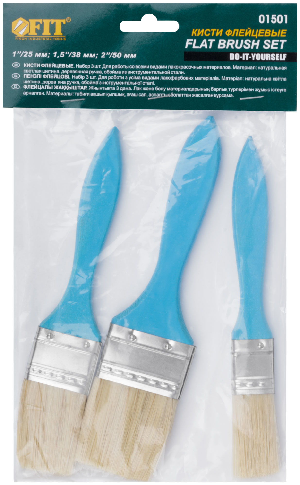 Кисти флейцевые, синяя ручка, набор 3 шт (1'', 1.5'', 2''), код 1501, производитель FIT