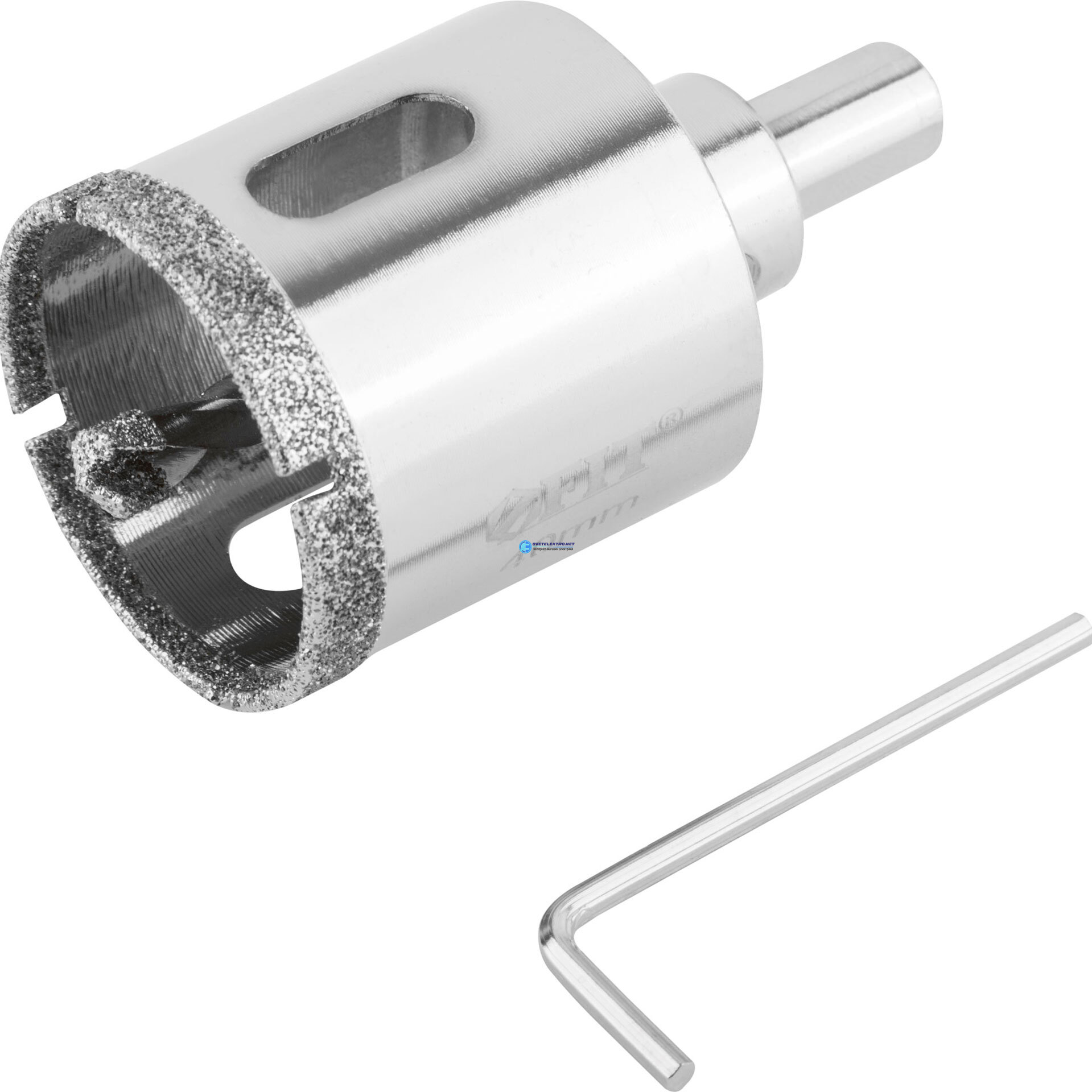 | Преимущества: | Высокая концентрация алмазного зерна обеспечивает износостойкость и длительный ресурс коронок|Чистый рез без сколов достигается за счет мелкозернистых алмазных частиц|Центрирующее сверло предотвращает смещение коронки во время работы и способствует точному позиционированию|Отверстия в корпусе коронки предотвращают перегрев и способствуют отводу шлама|Трехгранный хвостовик передает больший крутящий момент за счет стойкости к проворачиванию|Хромированное покрытие предотвращает коррозию: |