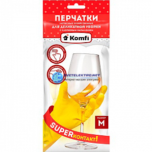 Перчатки латексные ''Для деликатной уборки'' с х/б напылением M, 2 шт, желтые Komfi, код 17064, производитель АДМ