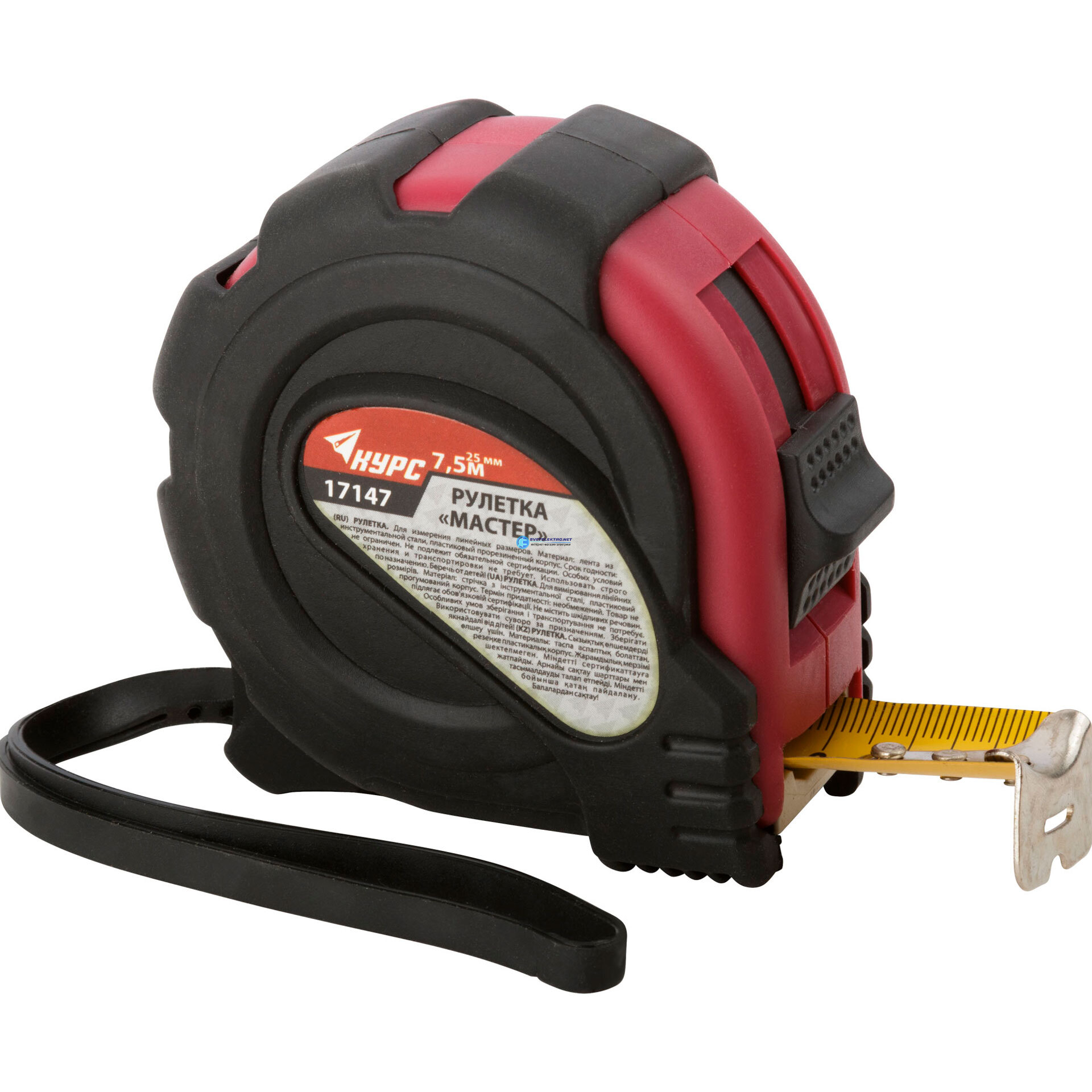 Рулетка прорезиненный корпус ''Мастер'' 7.5 м x 25 мм, код 17147, производитель Курс