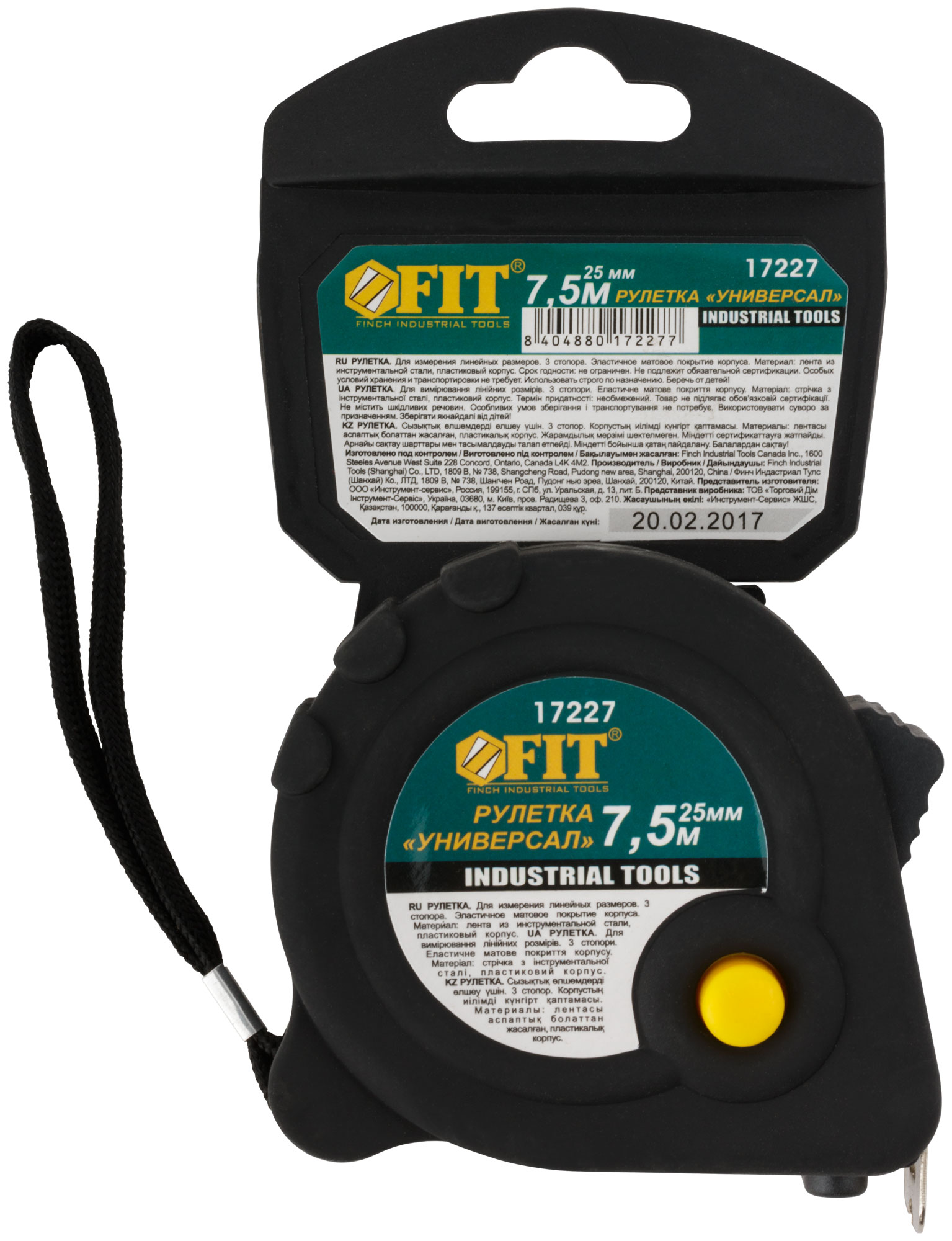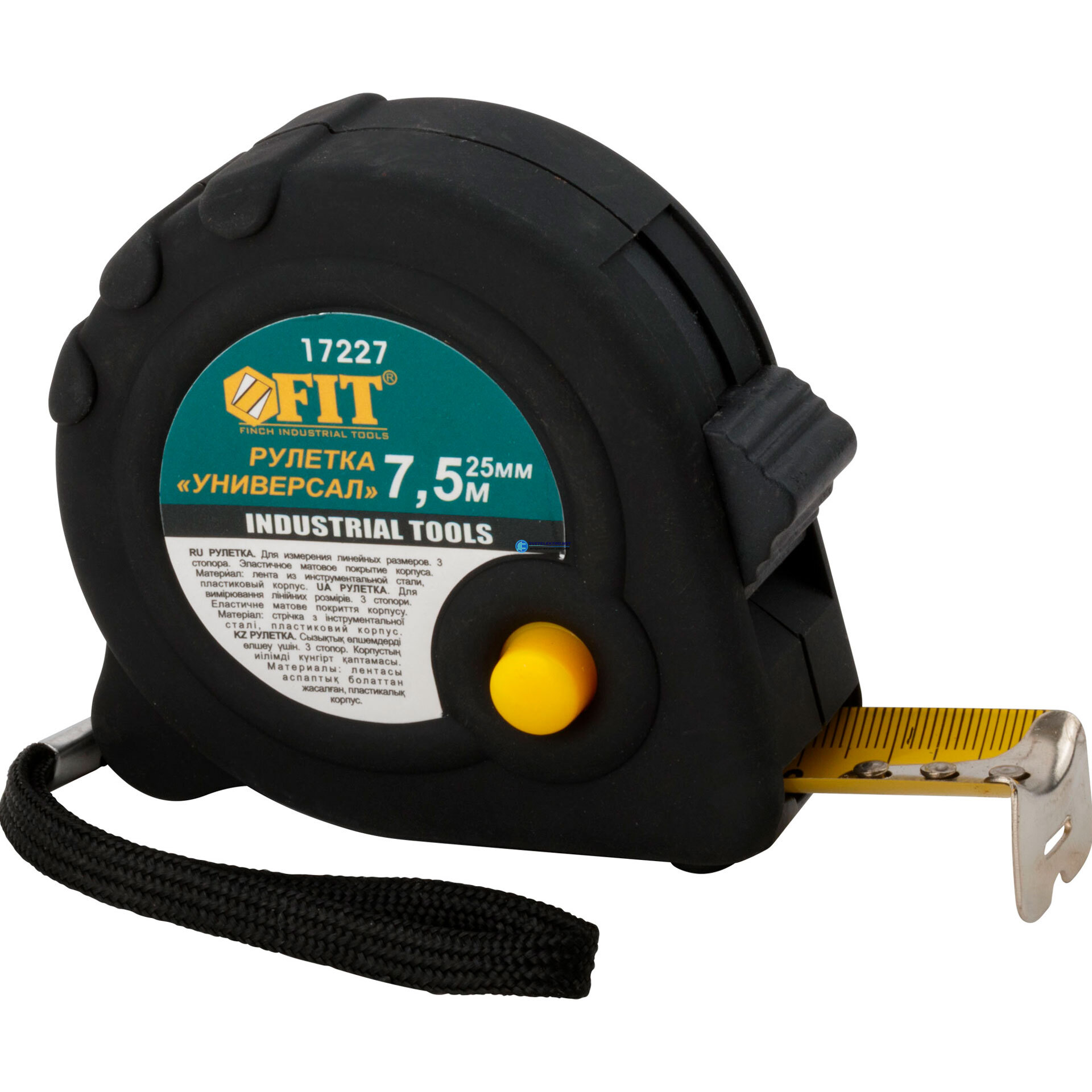 Рулетка прорезиненный корпус ''Универсал'' тройной стопор 7.5 м x 25 мм, код 17227, производитель FIT