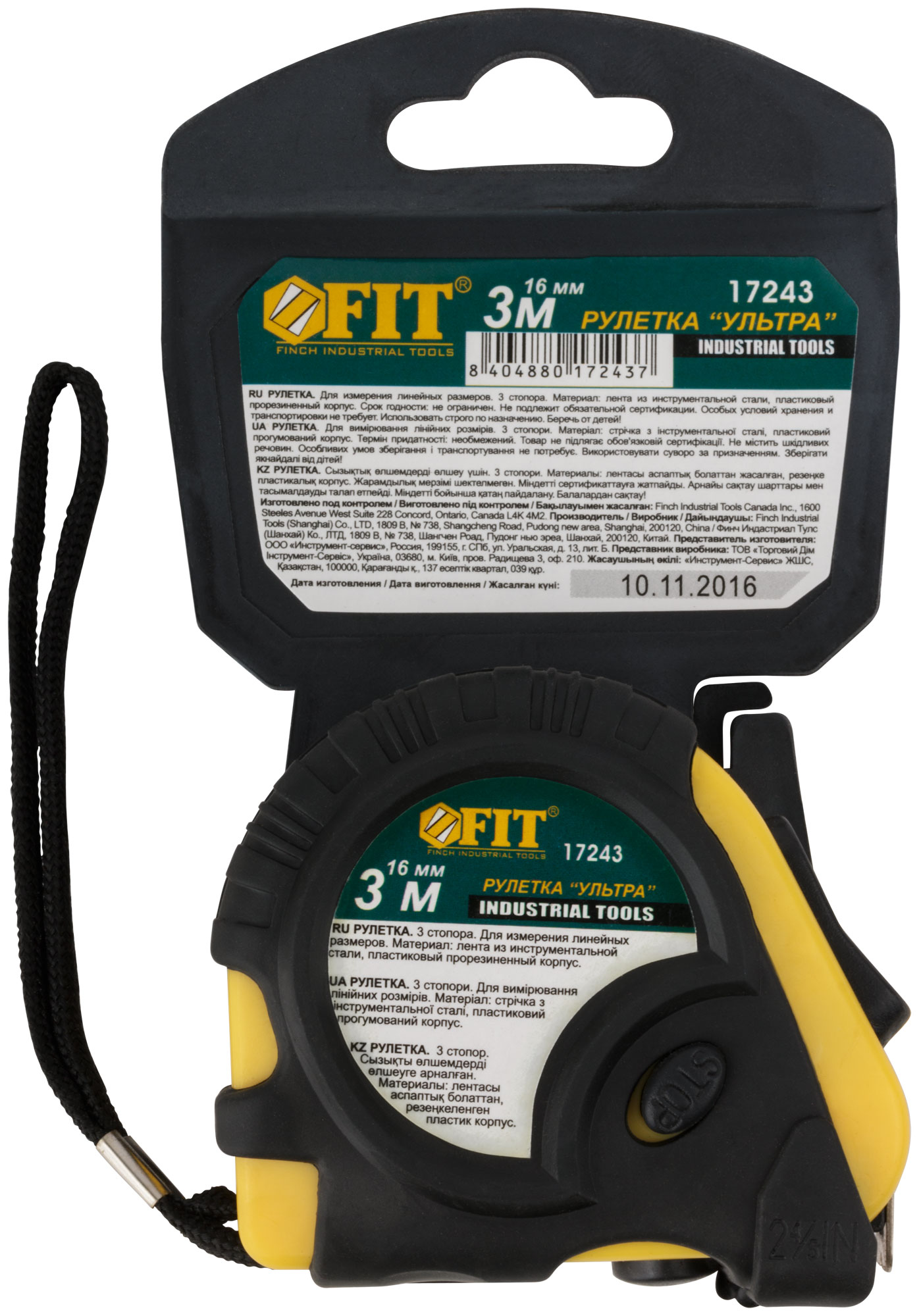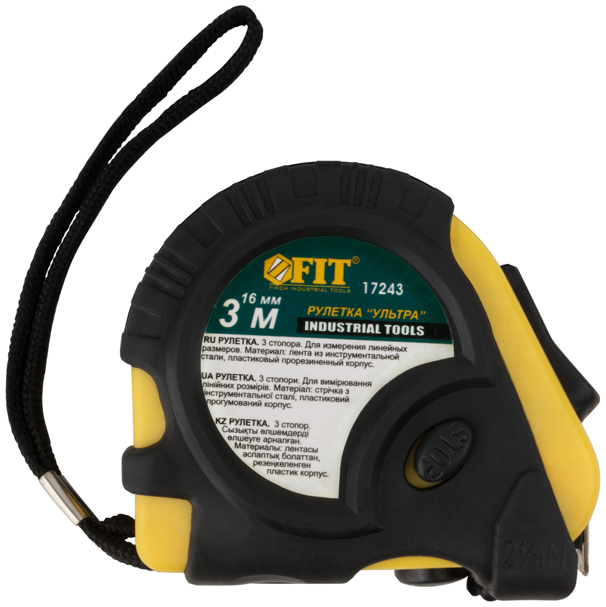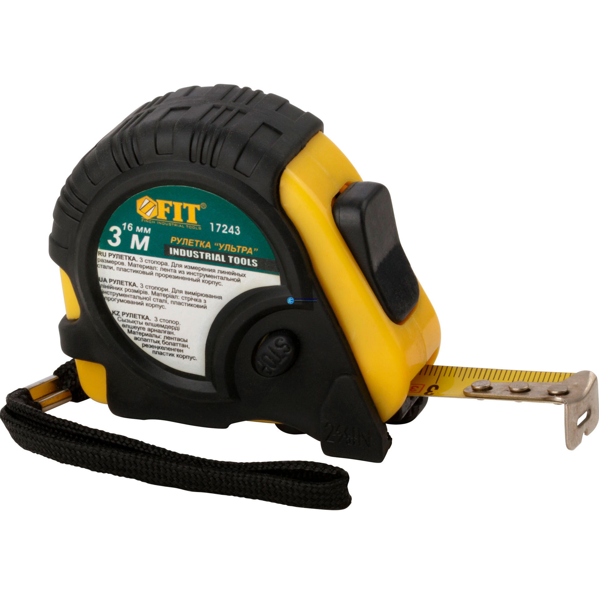 Рулетка прорезинен. корпус, тройной стопор ''Ультра'' м x 16 мм, код 17243, производитель FIT