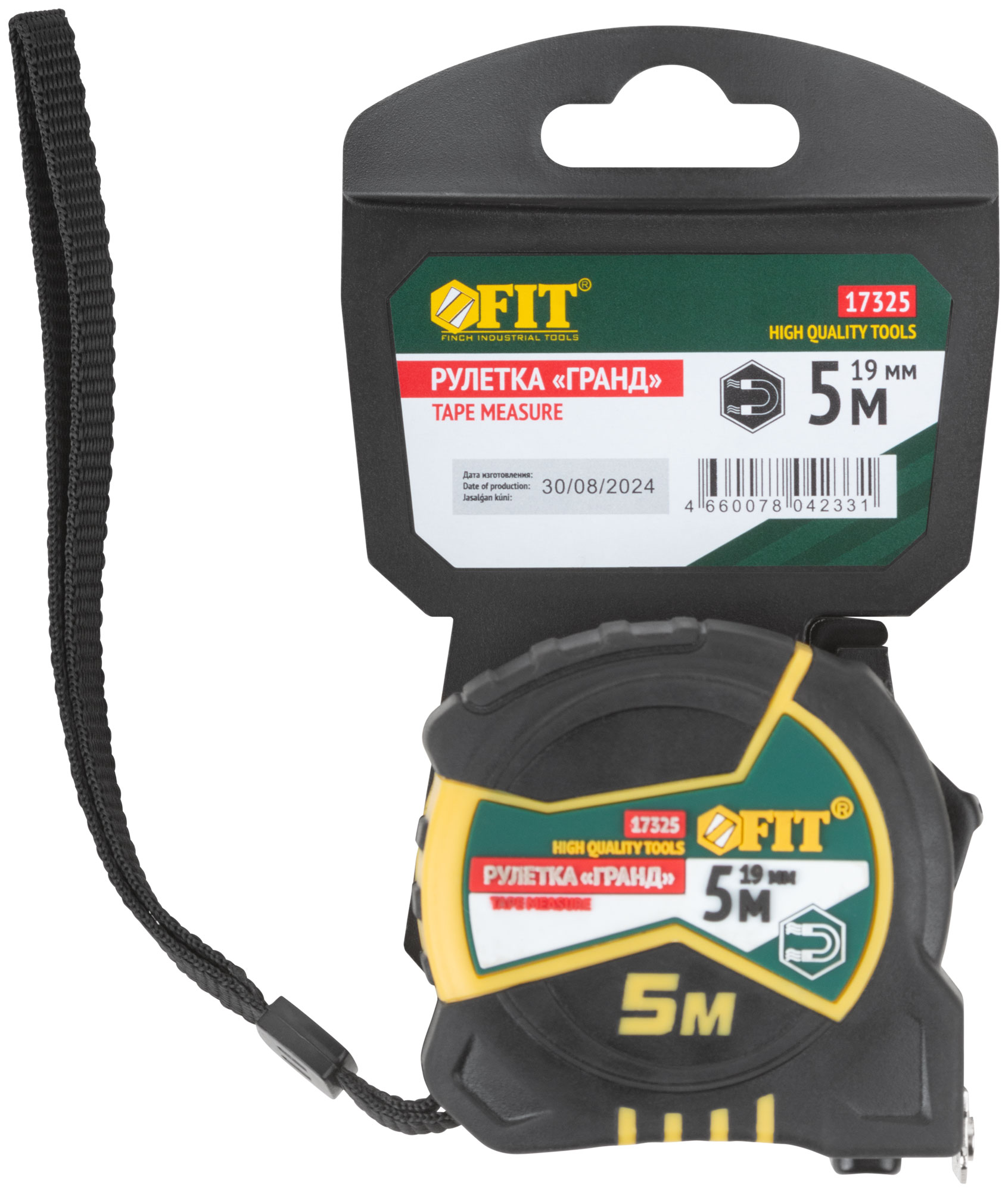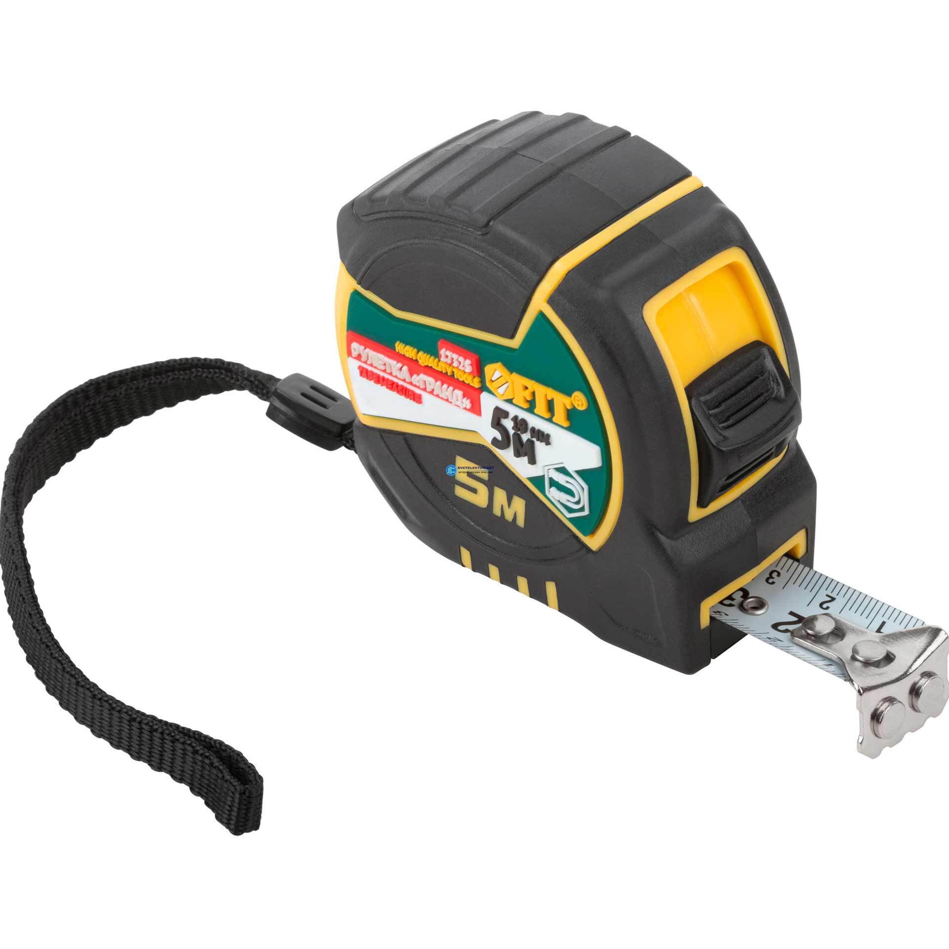 "Рулетка ""Гранд"", калибр.лента, нейлон.покр., магн.крючок, двойной стопор, прорезин.корпус м х 19 мм", код 17325, производитель FIT
