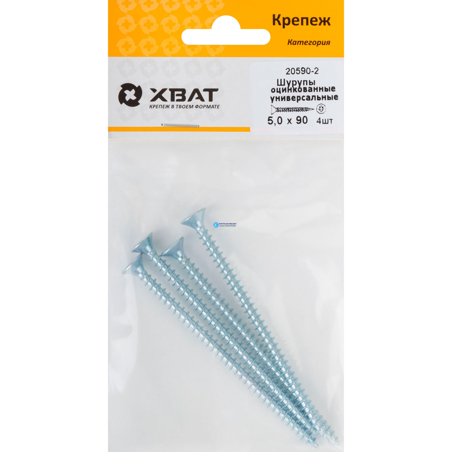 Шуруп универсальный 5х90 потайная головка, остроконечный, оцинкованный (4шт), код 20590-2, производитель Хват