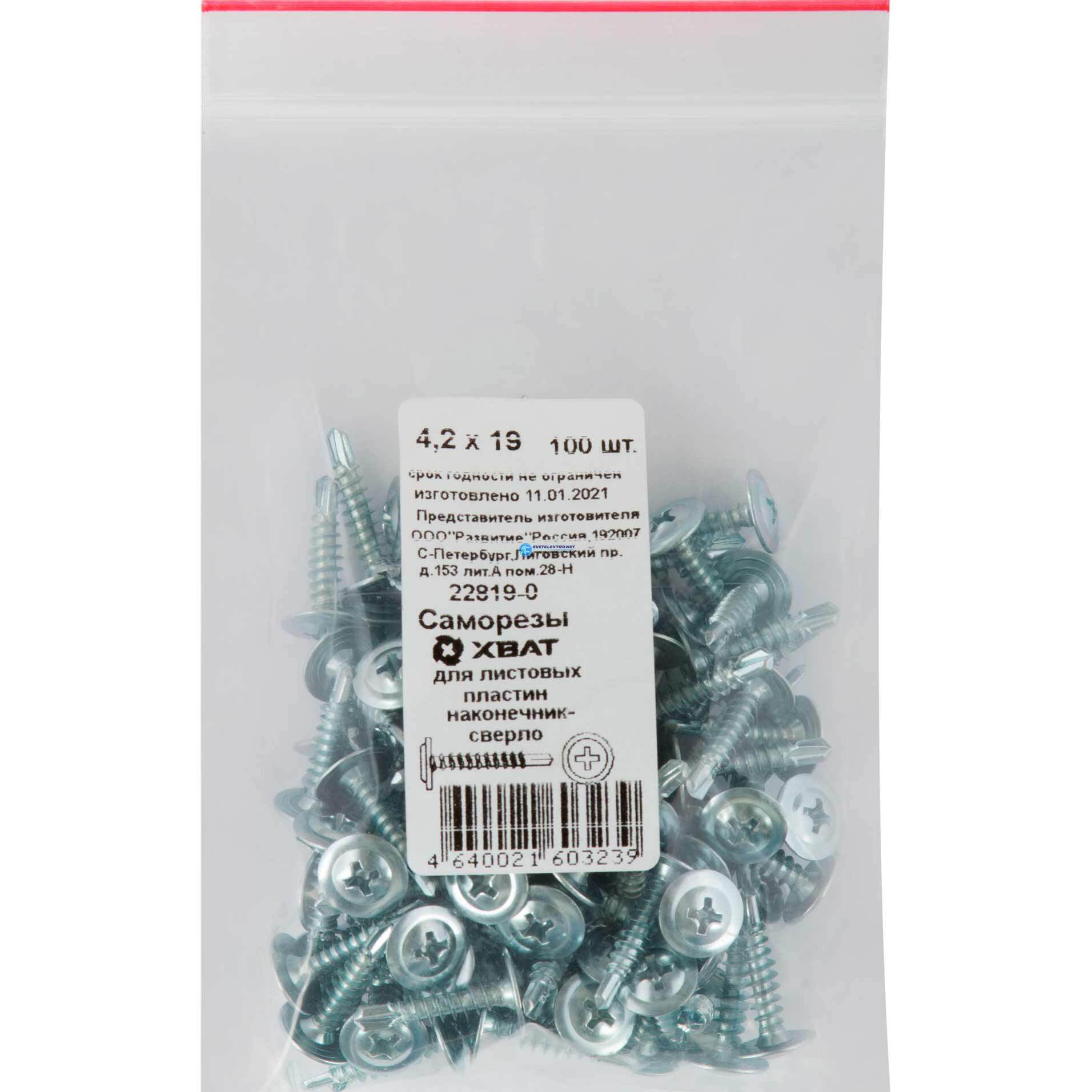 Саморез по металлу 4,2х19 сверлоконечный (100шт), код 22819-0, производитель Хват