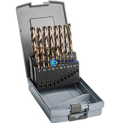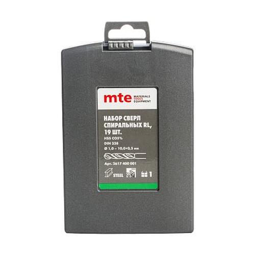 Набор сверл спиральных по металлу HSS Co5% RL DIN 338 1-10 мм, шаг 0,5 мм, 19 шт., код 2617400001, производитель mte
