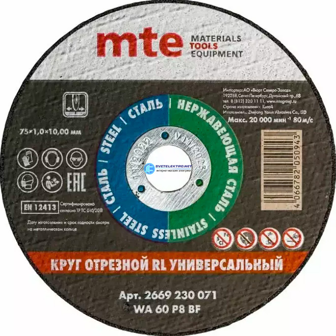 Круг отрезной RL универсальный D75X1,0X10,0 мм, код 2669230071, производитель WURTH