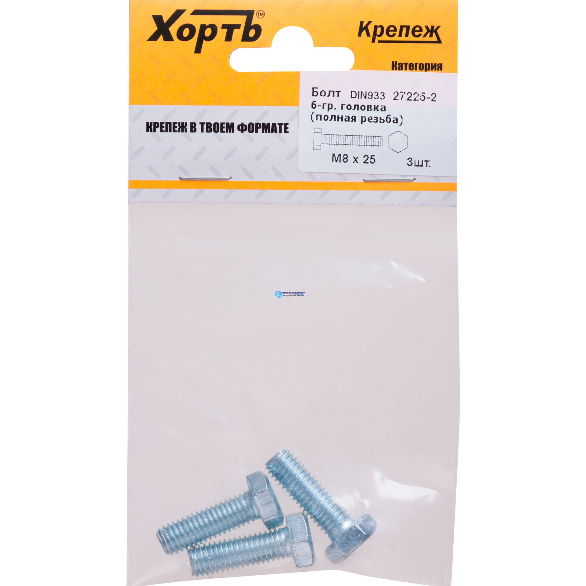 Болт DIN933 М8х25 шестигранная голова полная резьба оцинкованный (3 шт), код 27225-2, производитель Хват