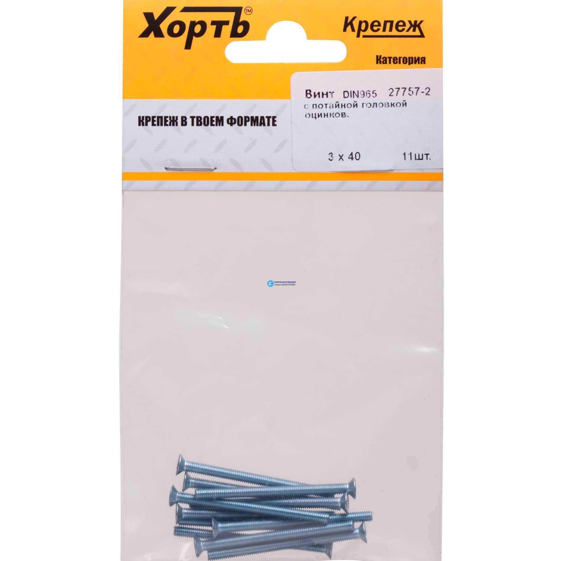 Винт DIN965 М3х40 потайная головка оцинкованный (11 шт), код 27757-2, производитель Хват