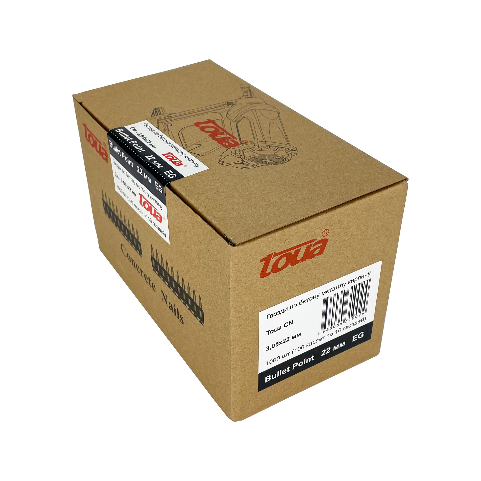 Гвозди усиленные по бетону и металлу CN bullet point 3,05х22 мм (1000 шт), код 30522stepEGBP, производитель Toua