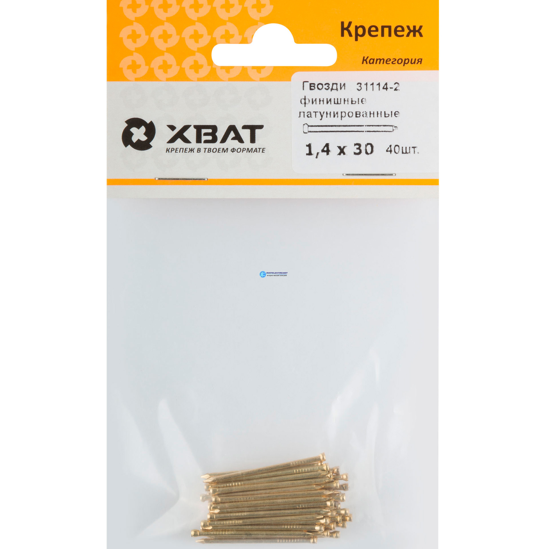 Гвоздь финишный 1.4х30 латунированный (40шт), код 31114-2, производитель Хват