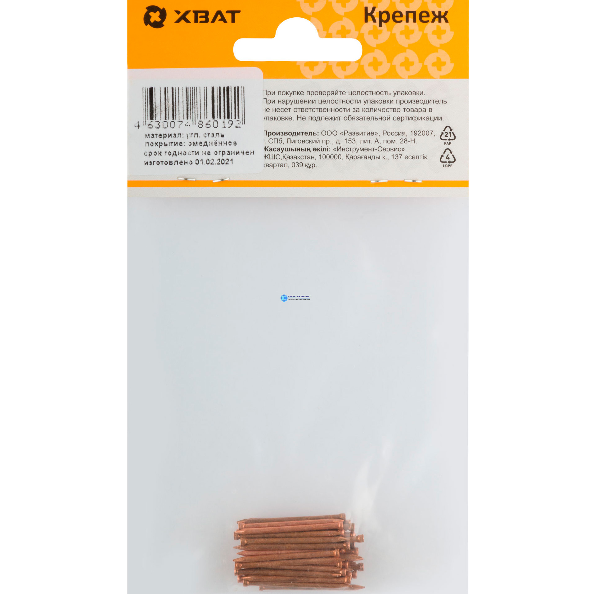 Гвоздь финишный 1.4х25 омедненный (40шт), код 31118-2, производитель Хват
