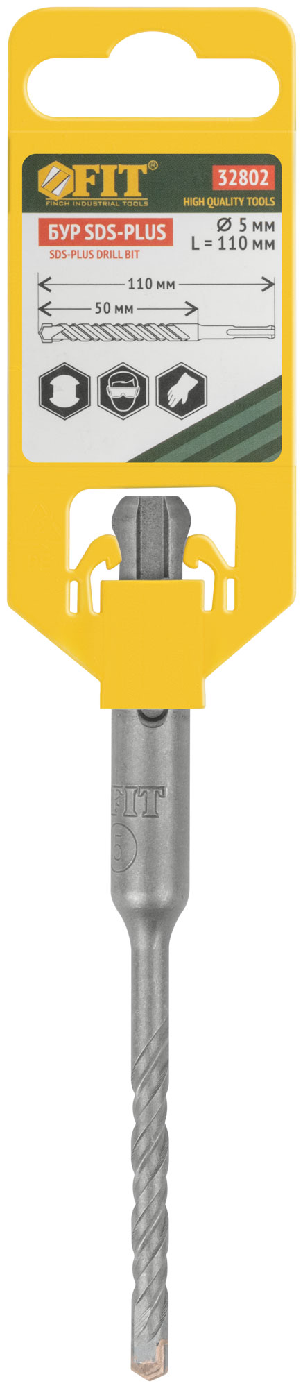 Бур по бетону SDS PLUS, Профи, W-образная вставка, двойная спираль, 5 х 110 мм, код 32802, производитель FIT