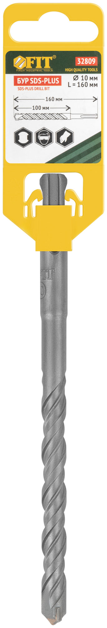Бур по бетону SDS PLUS, Профи, W-образная вставка, двойная спираль, 10 х 160 мм, код 32809, производитель FIT