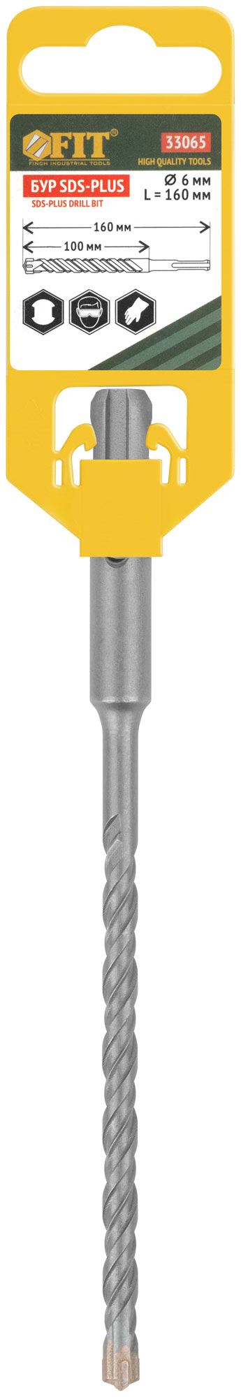 Бур по бетону SDS-PLUS, Профи, крестообразная вставка, двойная спираль, х мм, код 33065, производитель FIT