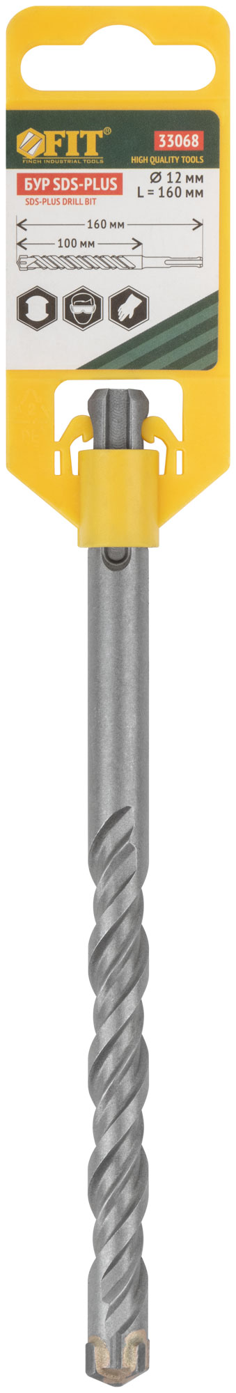 Бур по бетону SDS-PLUS, Профи, крестообразная вставка, двойная спираль, 12 х 160 мм, код 33068, производитель FIT