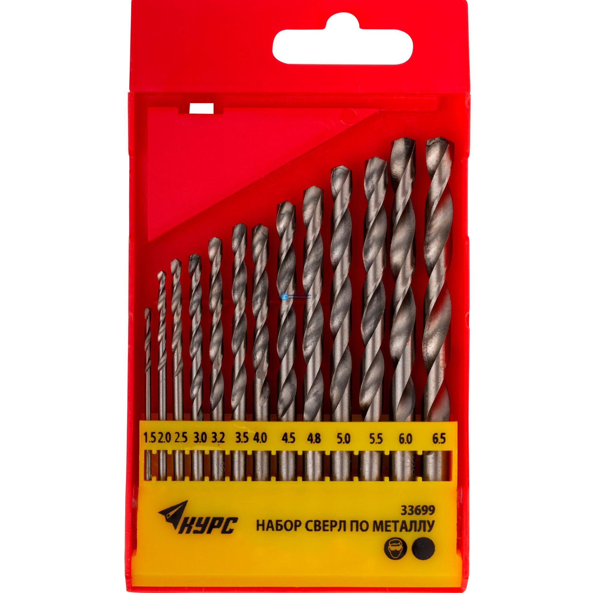 Набор сверл HSS по металлу полированных, 13 шт (1.5-2-2.5-3-3.2-3.5-4-4.5-4.8-5-5.5-6-6.5 мм), код 33699, производитель Курс