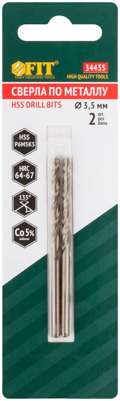 Сверла по металлу HSS с добавкой кобальта 5% Профи в блистере 3.5 мм (2 шт), код 34435, производитель FIT